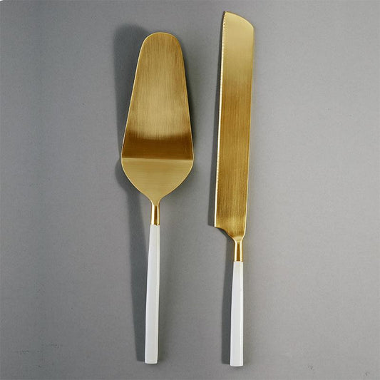 Wedding Cake Knife Set | Gold & White/Black | Nel Lusso