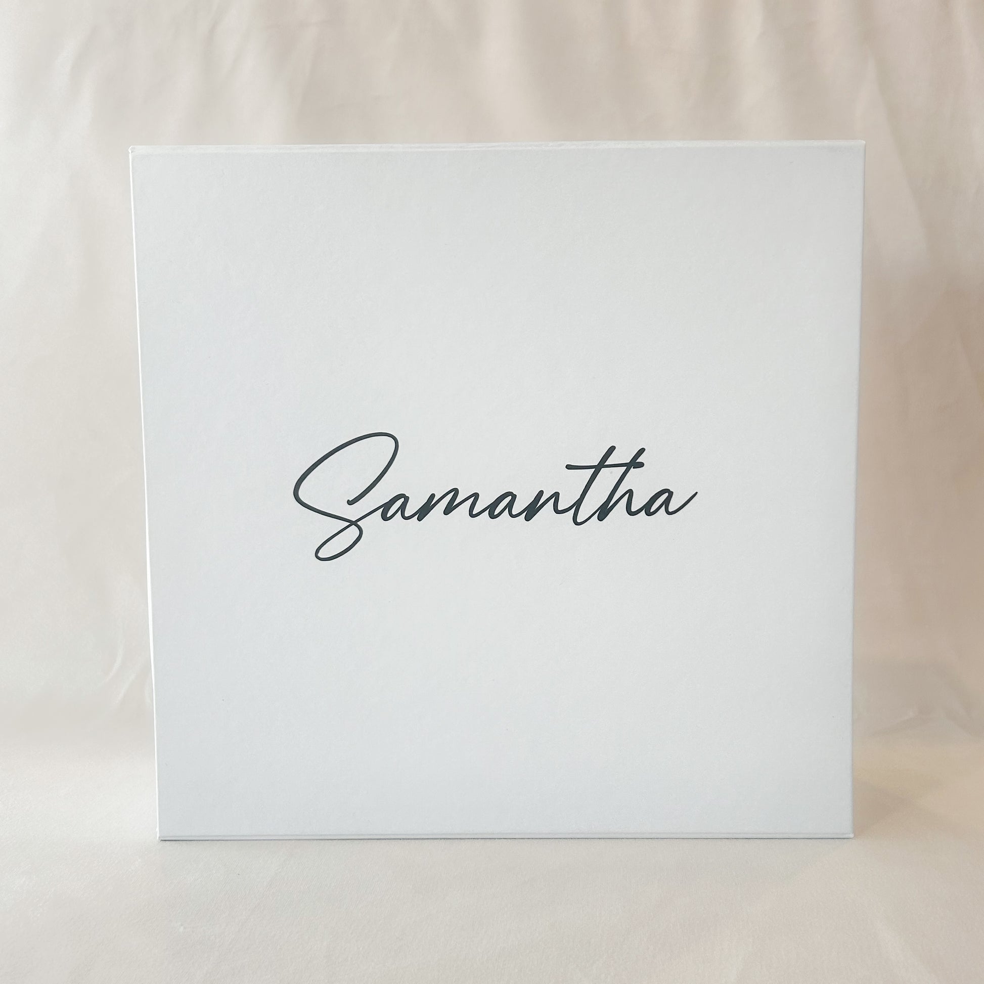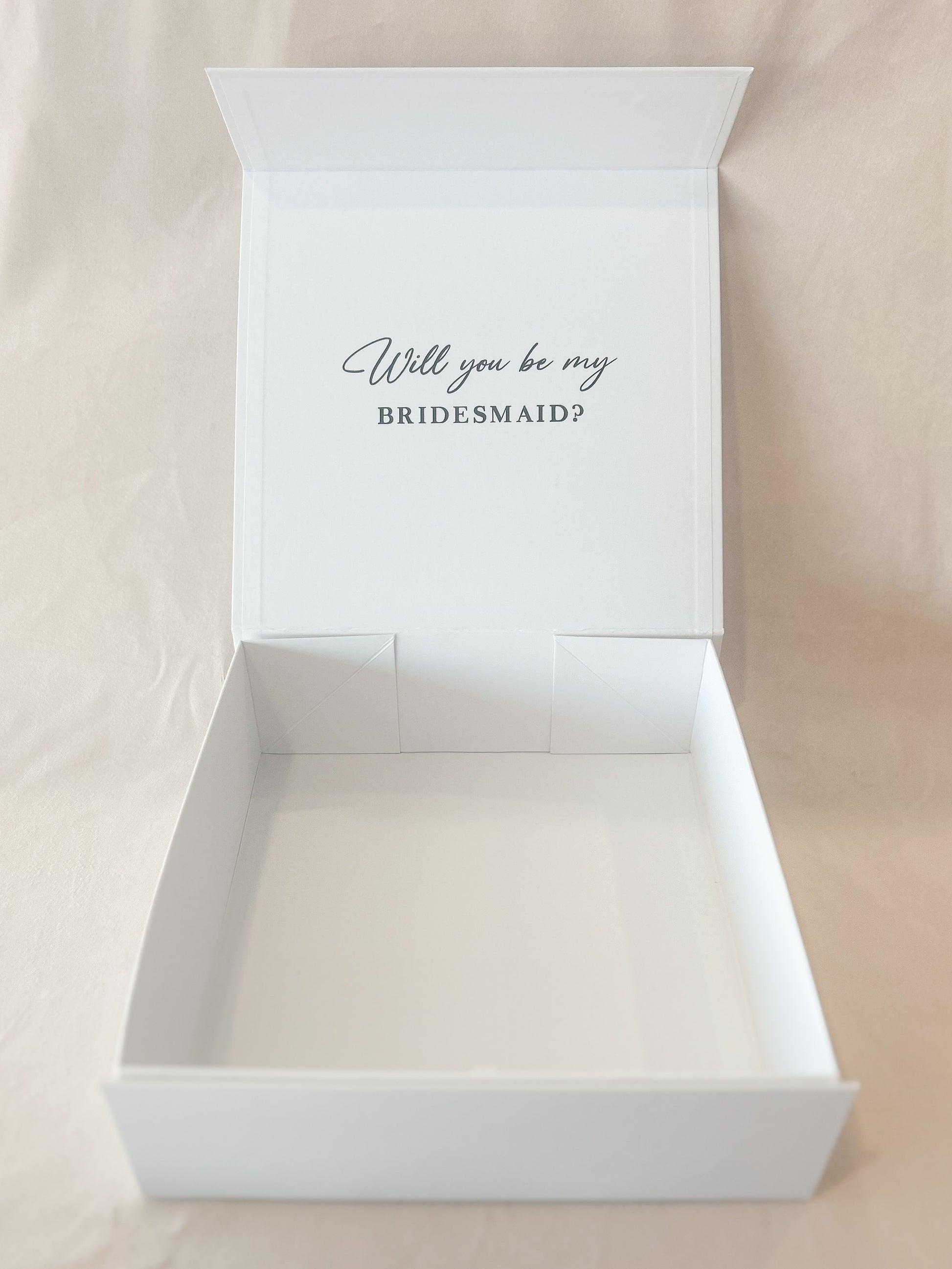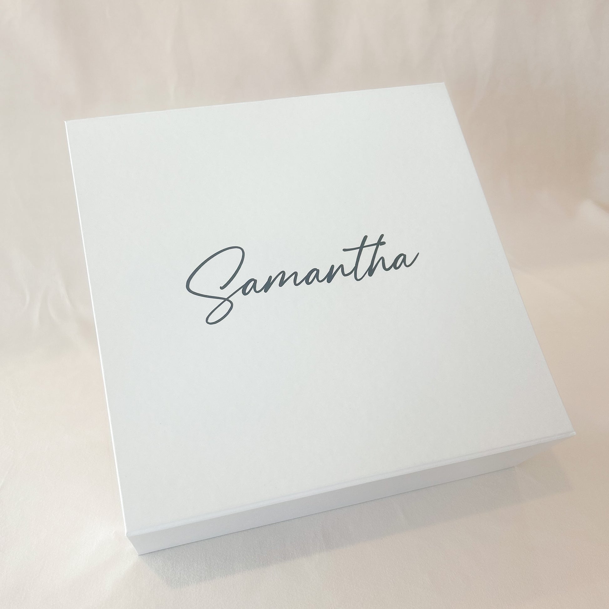 Our sophisticated blank white boxes can be personalised and gifted to your bridal party with a special message inside. Just select a message for the inside lid and personalise it with a name on the top.