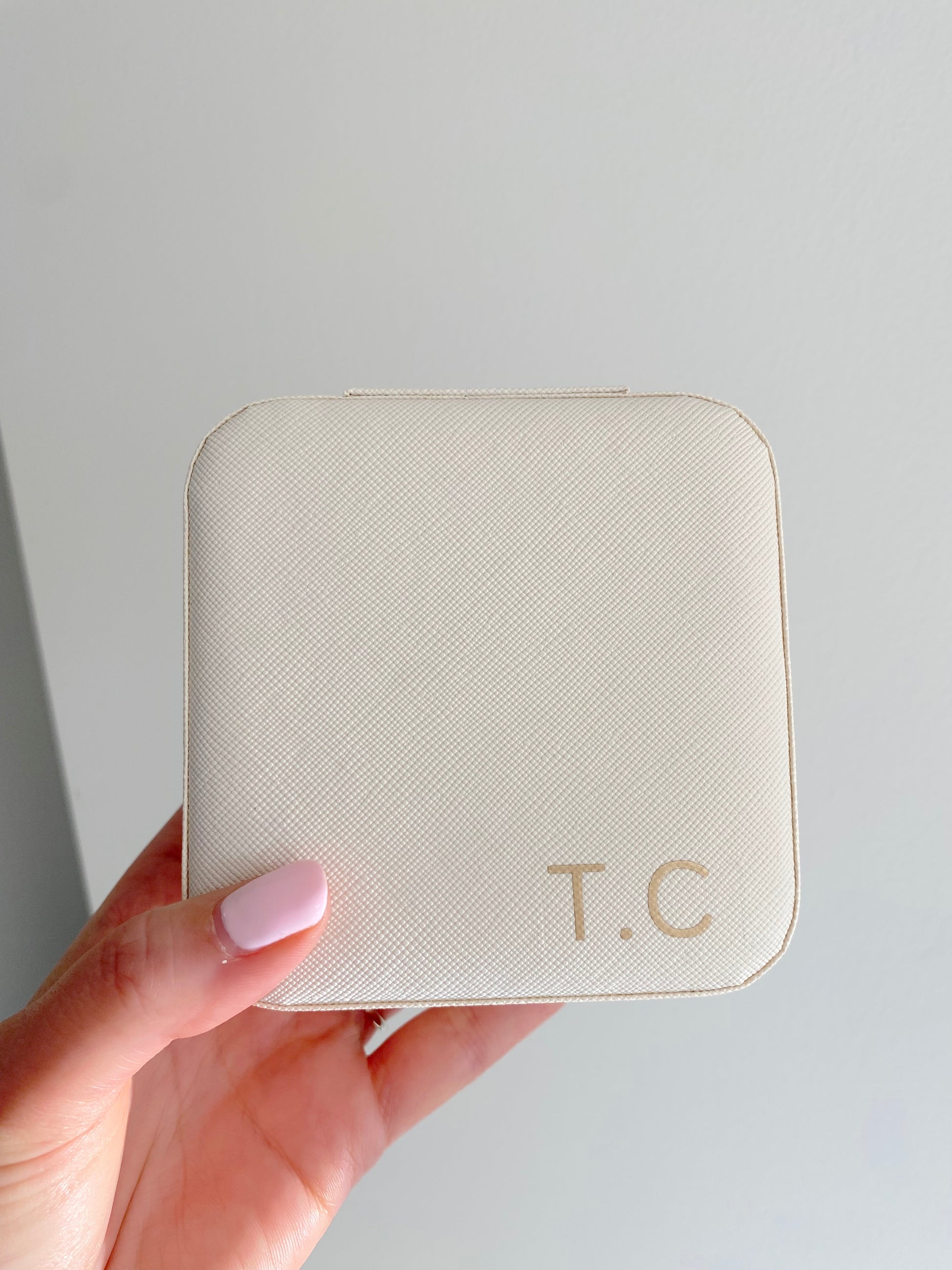 Travel elegantly with our Personalised Travel Jewellery Box. Designed with brides and bridal parties in mind, each box can be personalised with a name or initials for a bespoke touch.